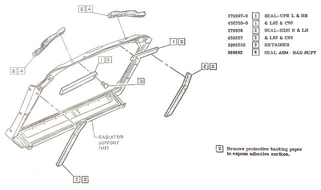 I removed a few brackets to gain better access to the area in between the radiator and condenser and also noticed that there was no seal between the top of the radiator and the core support, so I ordered a three-foot piece of 1x1" neoprene foam seal to see if I can close up that opening.